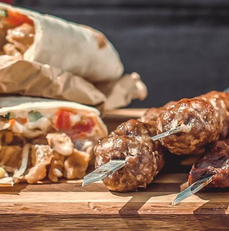 куриные крылья 400г, свинина (шея) 400г, картофель на мангале 400г, шампиньоны 200г, лаваш 2шт, лук свежий